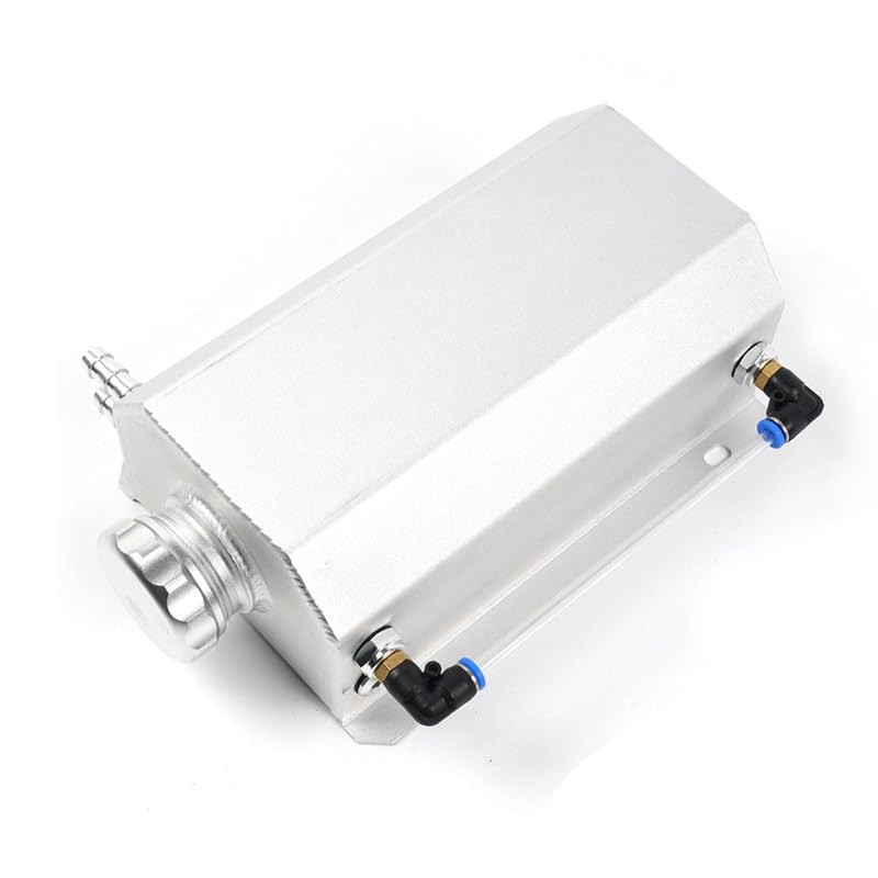 WODHMIEY Universal Coolant Overflow Tank, Radiator Overflow Tank, Aluminium Alloy, Visual Monitoring Hose, O-Ring Seal, TIG Welding, Magnetic Drain Valve (2L)