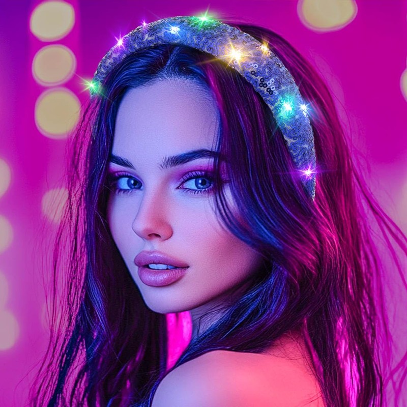 - Light Up costume headband features with lots of shiny sequin, and glowing effect, elegant and beautiful, can easily match with anything in your wardrobe.