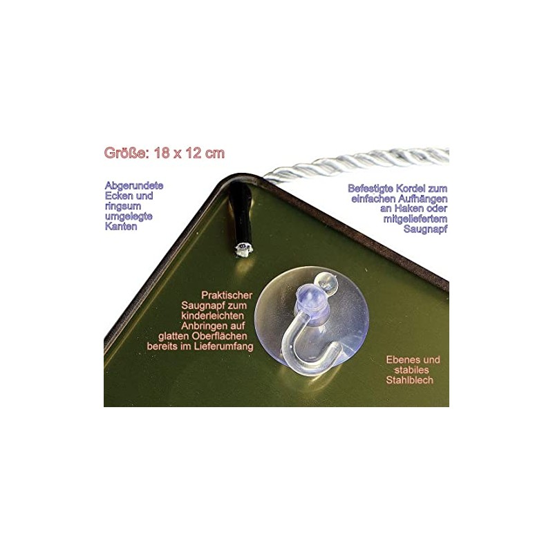 - Mega practical: high-quality and sturdy hanging tin sign with folded edges and two holes, including cord and suction cup for easy attachment, hanging as a wall or door sign