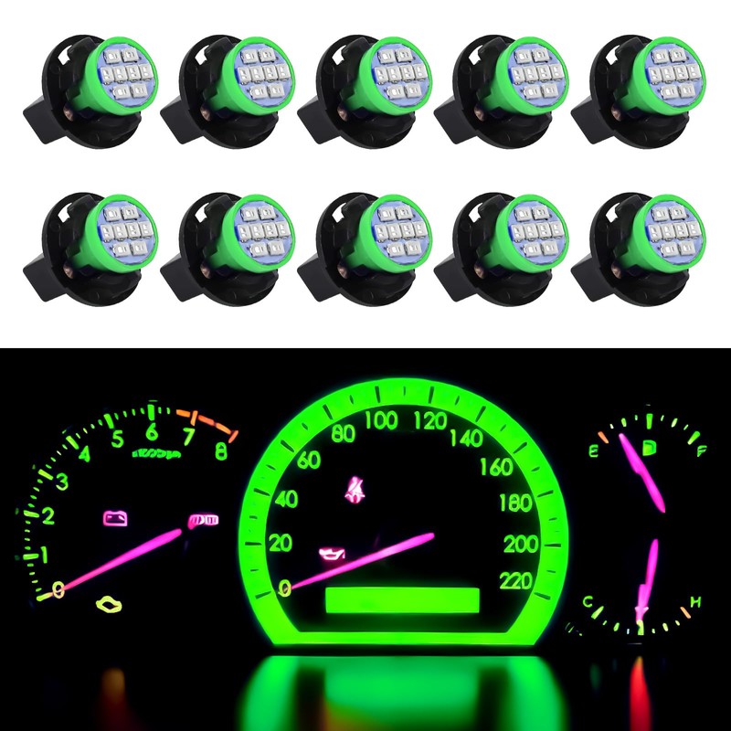 Wogomz 10Set T10 194 168 Dash Instrument LED Light Bulbs, Bright Panel Gauge Cluster Indicator Light Bulbs with Twist Lock Socket, Car Replacement Lights for Dashboard Light Map Light (Green)