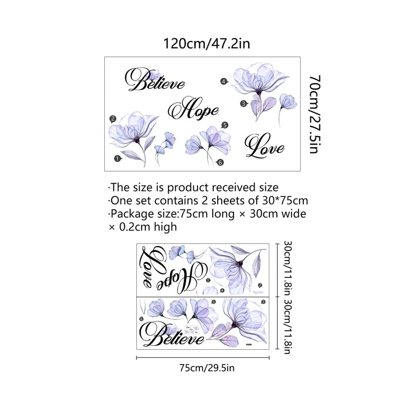 - ■ Wall Decals size:The size of the product received is: 30cm*75cm*2PCS, you can DIY wall sticker with your family, the finished size of the wall sticker is according to the space