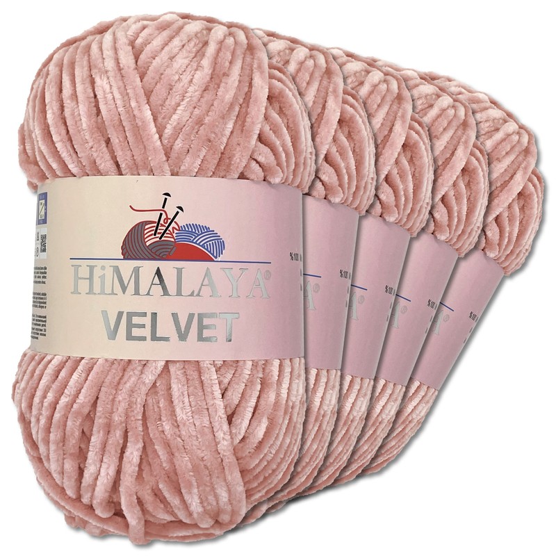 Himalaya Velvet is a chenille wool made from 100% micro polyester with a running length of 120 metres per 100 gram ball.