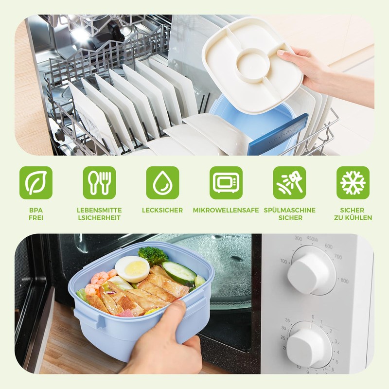 - 【Sicheres Material】Die Lunchbox besteht aus lebensmittelechtem PP-Material, das sicher, umweltfreundlich, ungiftig, nicht reizend, BPA-frei ist und das Wachstum von Schimmel wirksam hemmen kann. Unschädlich für die menschliche Gesundheit, stilvolles Aussehen, mikrowellen- und spülmaschinenfest.