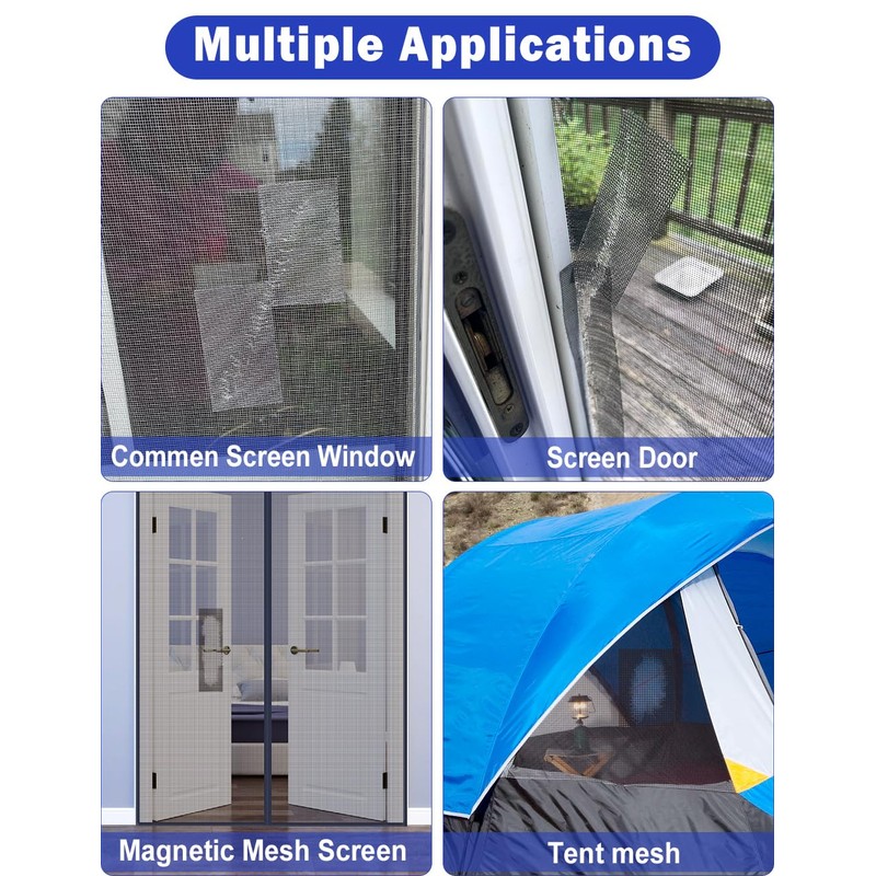 • Widely Application: The window screen tape can be used in various places such as window screens, retractable screen doors, tent mesh, and more. It is versatile for use in outdoor tents, RV window screens, camping tarps, and any other applicable areas.