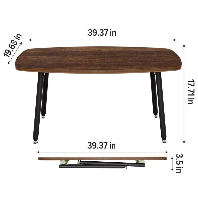 WOHOMO Folding Coffee Table Rustic Small Coffee Tables for Living Room Farmhouse Portable Table for Small Spaces Rectangular Mid Century Coffee Table, No Assembly 39.3 * 19.6 * 17.7IN, Walnut
