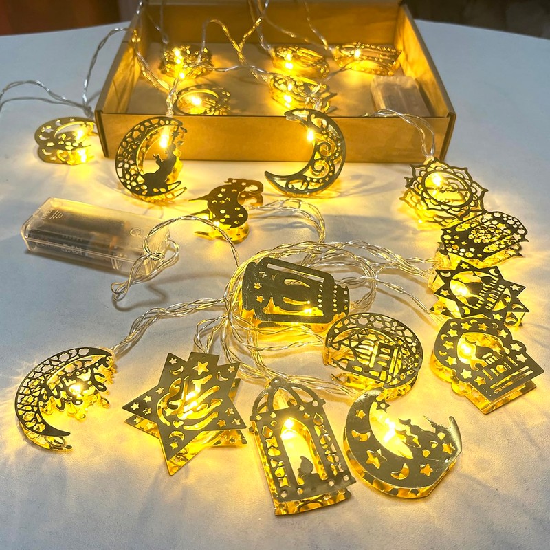 - ?? Hergestellt aus hochwertigem Metallmaterial und Kupferdraht, wasserdicht und langlebig, weniger W?rme von den LED, Energieeinsparung und Stromsparen, engen Abstand zwischen LEDs, mehr gleichm??iges Licht und Helligkeit. Ramadan Lichterketten Set ben?tigt 2 AA Batterien (nicht im Lieferumfang enthalten). Each decal design is cut on thin metal sheets with wonderfully intricate designs, mit warmen LED Lichtern wird Ihr Ramadan voller Freude und Vitalit?t.