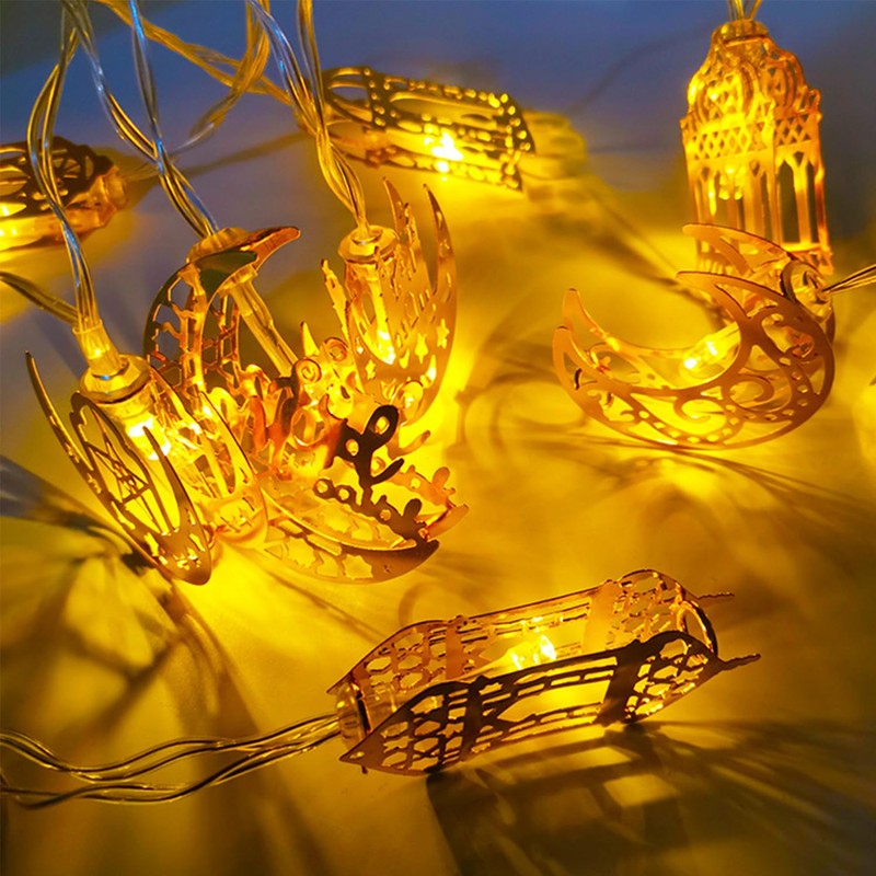- ?? 2 Lichterketten fr Ramadan und Eid - Kombinationsstil A und B, 2 Meter 10 LEDs pro Stck. Es gibt 20 unterschiedliche Motive, enth?lt verschiedene Elemente des Ramadan Festes wie Schl?sser, den Mond, Sterne, g?ttlichen Laternen, Moschee, eine betende Person, arabische Kalligraphie und Ziegen usw. Diese Ramadan decorate Lichter perfekt fr Ihre Eid und Ramadan Partys.