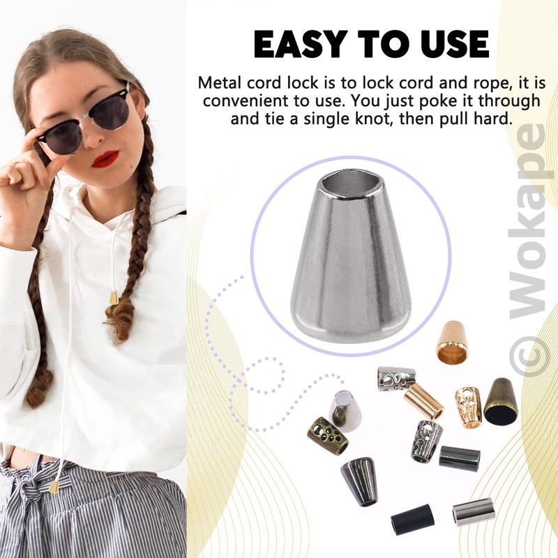 Wokape 120Pcs Alloy Cord End Lock Stopper, Hollow/Column/Bell Rope End Fastener Stopper Metal Drawstring for Bag Clothes DIY Lanyard