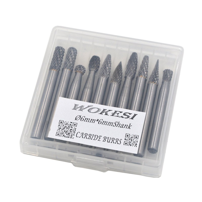 Wokesi 10Pcs,1/4"Cutting Diameter,6mm Shank Diameter,Solid Tungsten Carbide File Cutter Taper Points Burrs Grinding Head Fit Bits Endmills for Rotary Tools (1/4''(6mm))