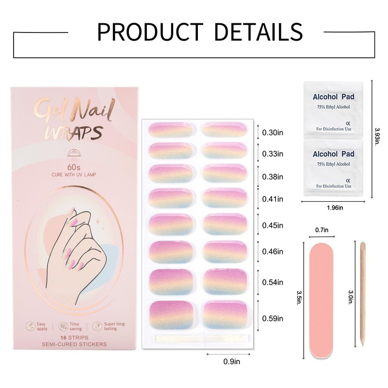 - Rainbow Gradient Semicured glaze semi cured gel nail strips gel nails polish strips gel polish uv gel nail stickers with uv light nail gel stickers strips wraps nails semi cured nail polish stickers for nails gel polish strips cured nail strips cured