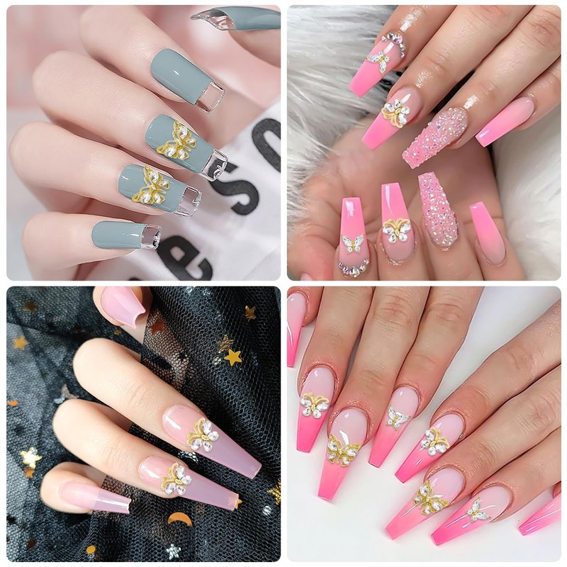 - 【Luxry Charms Design】: The nail charms set are designed to be alloy butterfly and clear glass crystals, cute and luxury, you can just stick it on nails, Luxury and shiny all the time, make your nails look more elegant and charming.