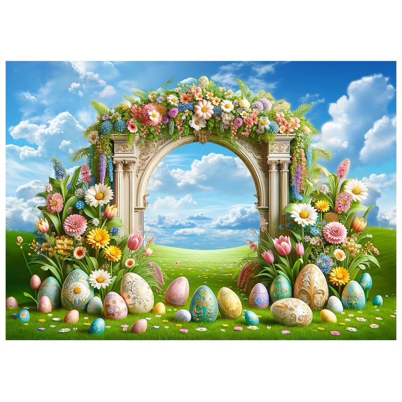 WOLADA Easter Backdrop Easter Lawn Backdrop Flower Arch Easter Egg Backdrop Easter Outdoor Party Backdrop Children's Photo Backdrop 7x5FT FW91