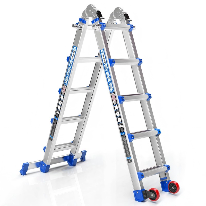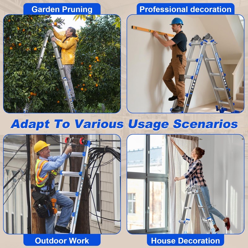 - Versatile 5-In-1 Design: Industrial-grade aluminum A-frame + telescoping system converts to 5 configurations (A-frame, right angle, stair A-frame, extension, folding ladder). Tackle any indoor/outdoor high-reach task with one versatile tool