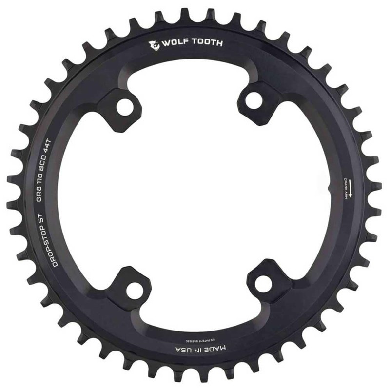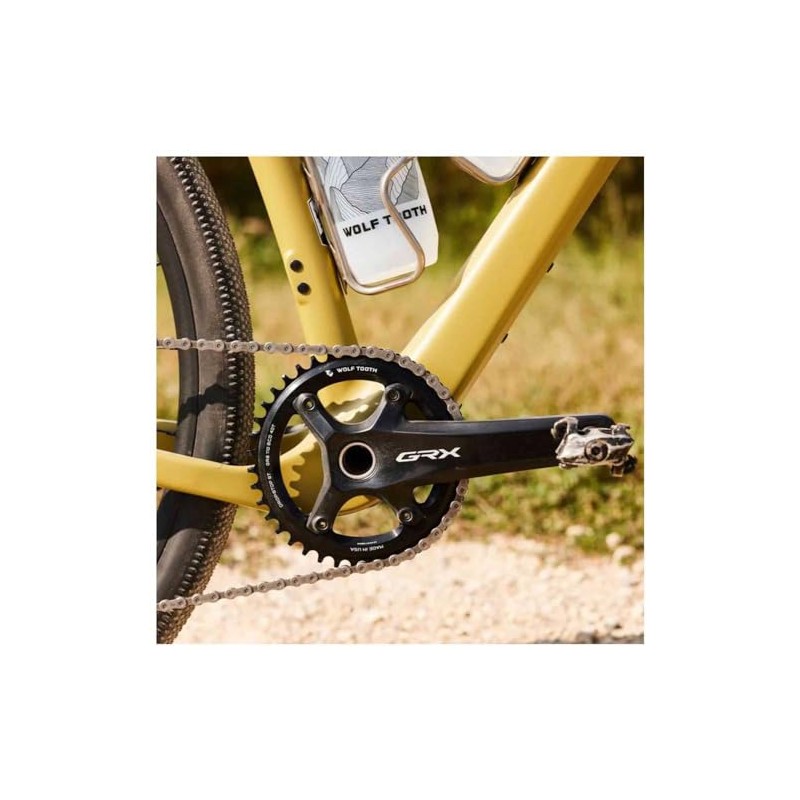 - Wolf Tooth's patented Drop-Stop wide/narrow tooth profile provides the ultimate chain retention and mud-shedding ability
