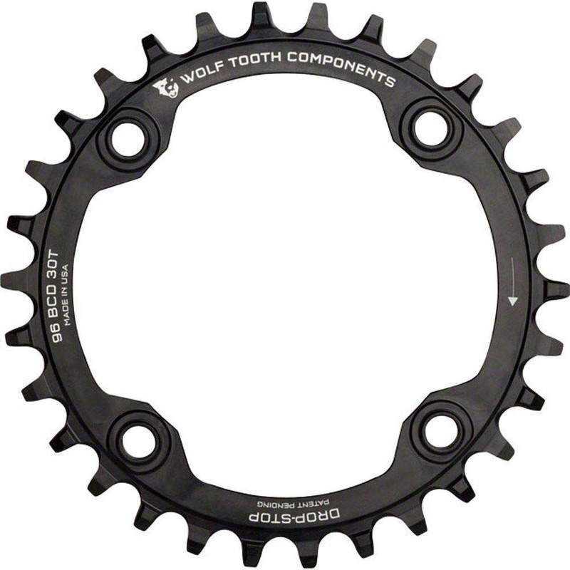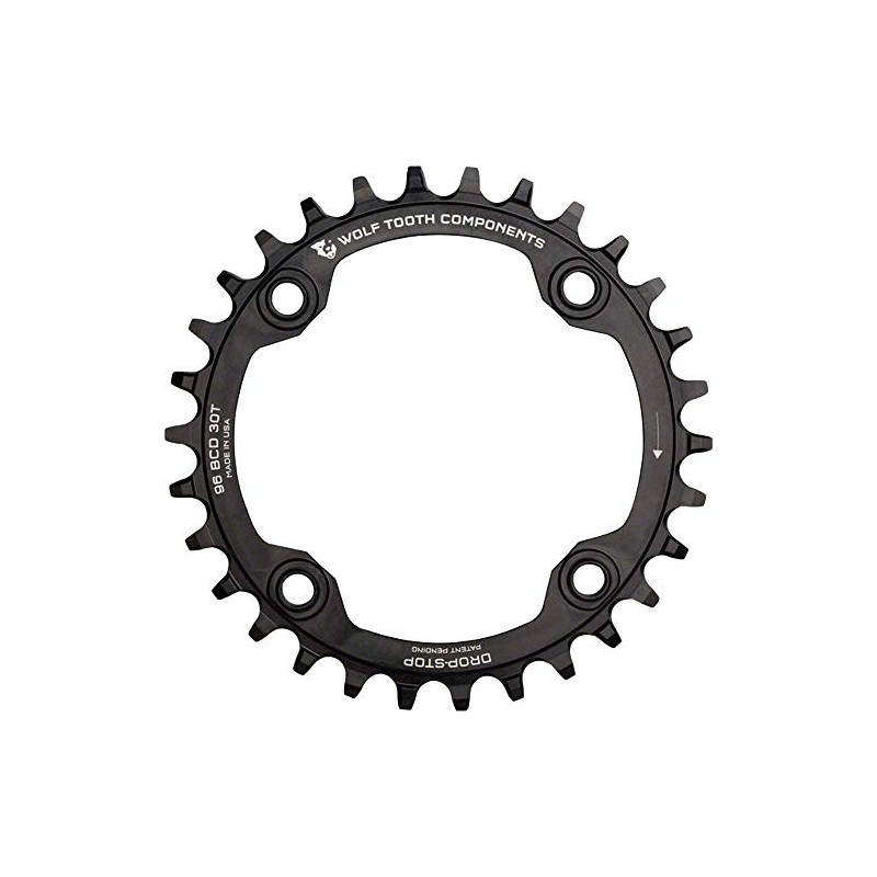 Wolf Tooth Drop-Stop Chainrings for 96mm BCD Shimano Symmetric Bolt Pattern Cranksets (Black, 30t)
