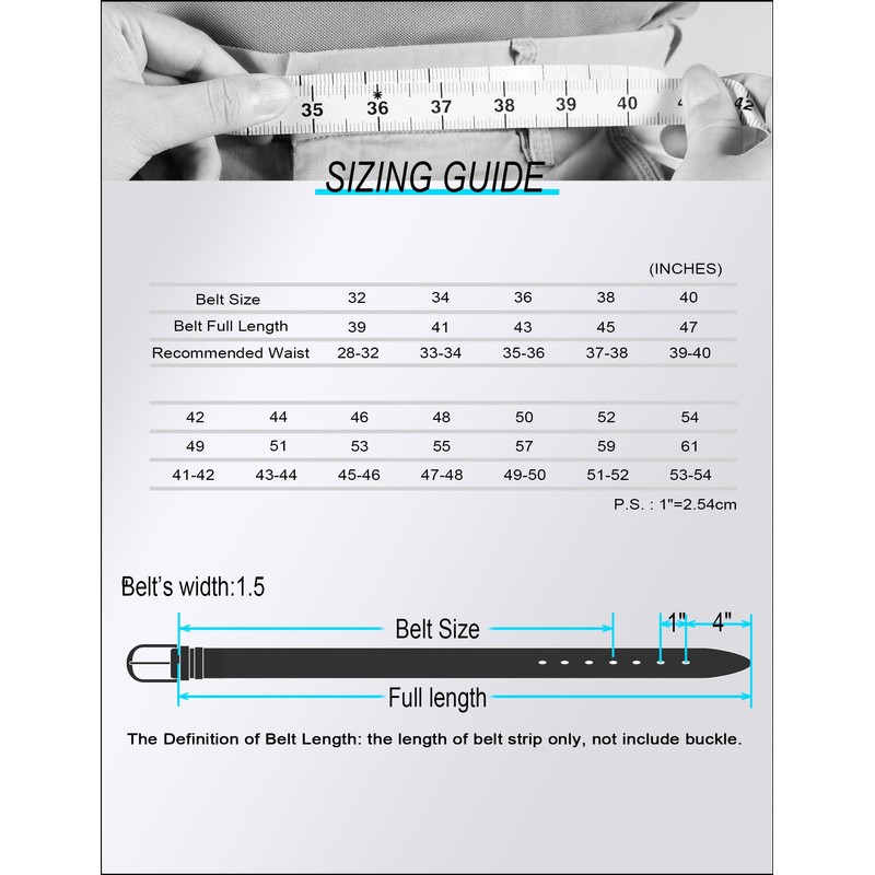 - [Perfect Fit]: Crafted with seven reinforced holes, this leather belt effortlessly adapts to various waist sizes. Moreover, to optimize comfort, order one size larger than your waist size. Finally, explore our sizing chart for the perfect fit tailored to you