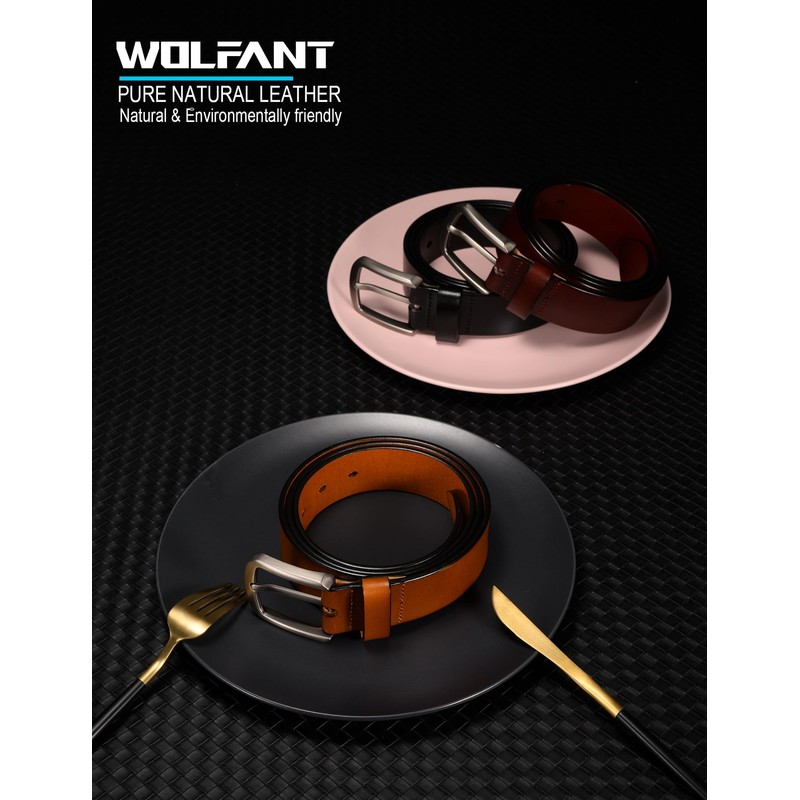 WOLFANT Men's 1.5" Top Full Grain Leather Belt in Gift Box,100% Italian Real Solid Leather