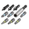 - 6 Solid bits for screws with Pozidriv and Torx drive, as well as 3 counter sinks