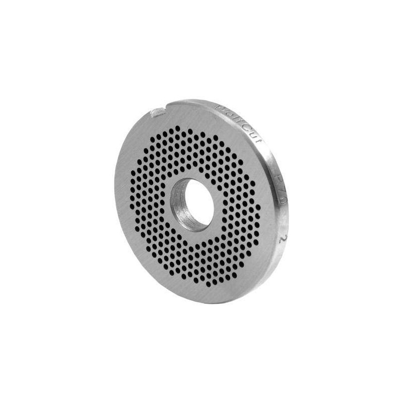 - Meat grinder disc R70 tool steel compatible with meat grinder Edertal EMS70. Manufactured in accordance with DIN from tool steel, disc diameter: 70 mm, disc thickness: 8.0 mm, centre hole: 17.0 mm