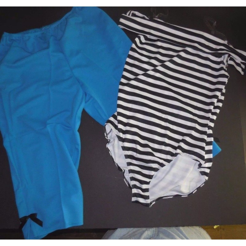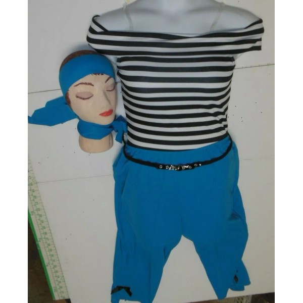 This LISTING is for an extra large adult of these cute 50's costume in turquoise blue, this is the only size I have in adult sizes. These retailed at $37 each and are perfect, made by Wolff Fording and will come in the original packaging. This outfit consists of a striped leotard (off the shoulder) and turquoise slit capri pants with bows. 1fndybrn59