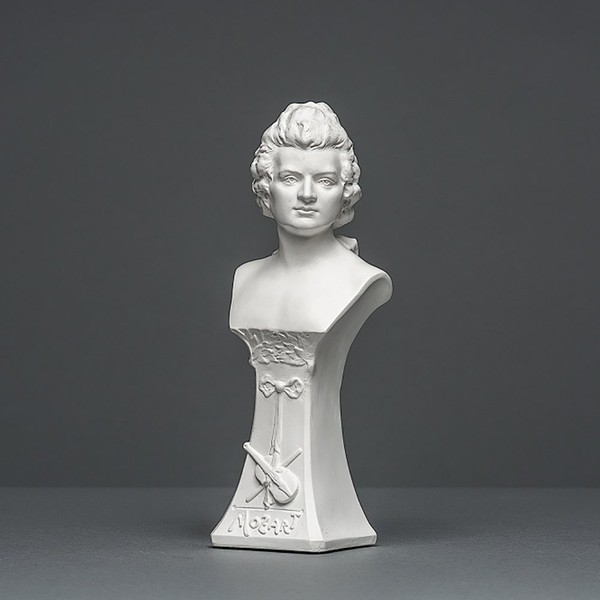Wolfgang Amadeus Mozart Sculpture Made Cellane, Handmade in Germany, Bust in White, 19 cm