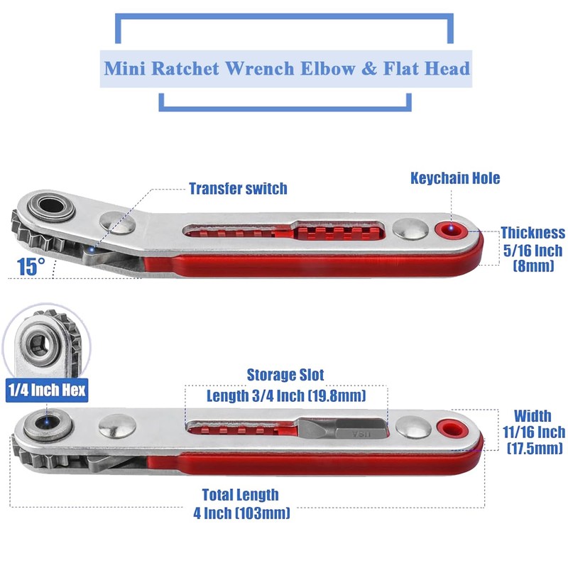 3.Versatile Wrench Types: Flat Head for direct access, Elbow Head for reaching screws in tight angles