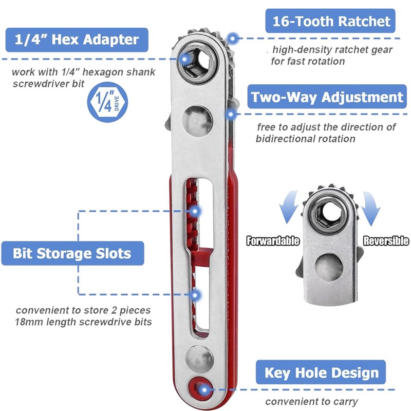 - The ratchet wrench handle features a storage function,can accommodate two screwdriver bits,convenient and practical;Key hole design at the end of the handle,easy to carry and store