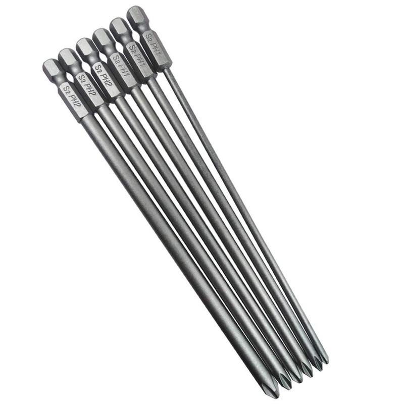 - Size: 3mm PH1, 4mm PH1, 4.5mm PH1, 4.5mm PH2, 5mm PH2, 6mm PH2. Shank: 1/4 inch hex. Overall length: 150mm / 5.9 inch.