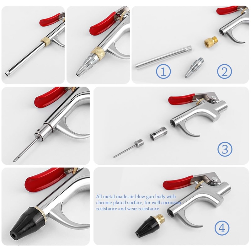 - The gun body of the air nozzle blow gun is made of zinc alloy and chrome-plated, anti-corrosion, wear-resistant