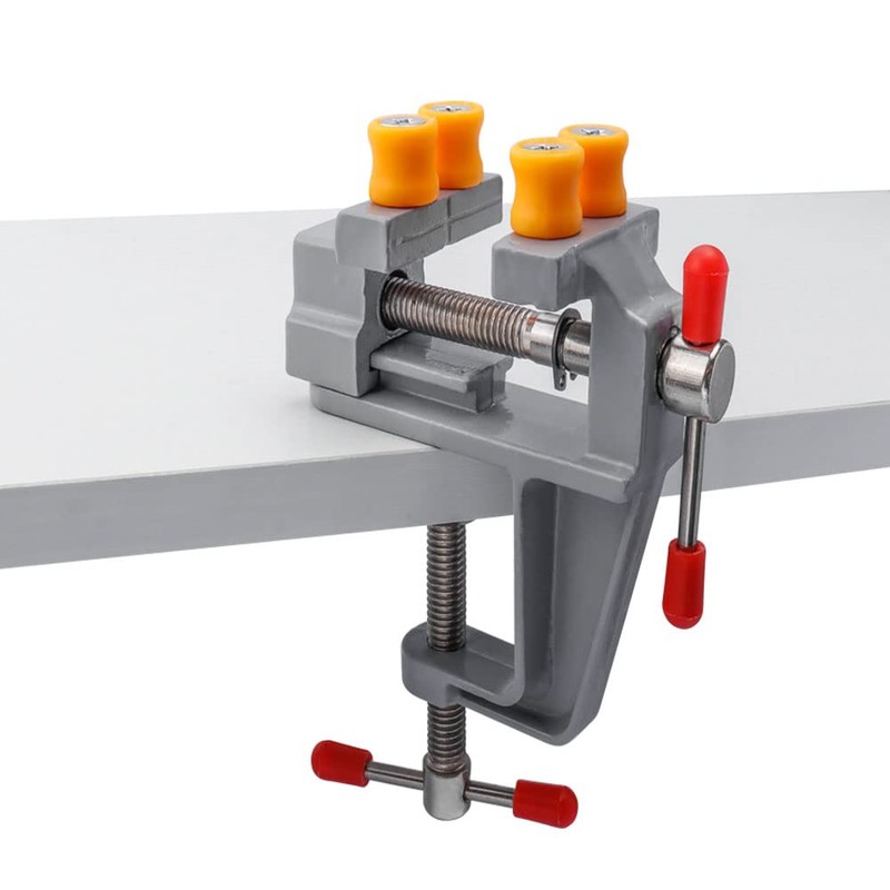 The body of the mini vise is made of cast aluminum and is a convenient miniature vise to secure wooden blocks for sanding, grinding, detailing, drilling, carving, chisel, etc.