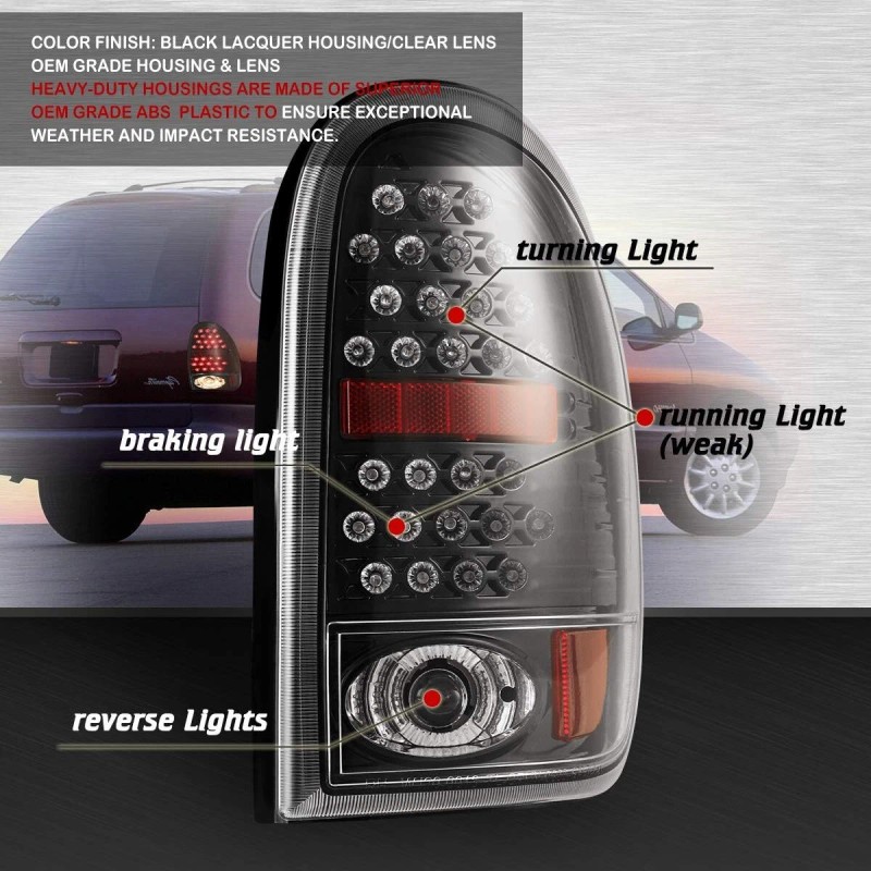 Wolfx Led Tail Lights For 1996-2000 Dodge Caravan Rear Brake Lamp Driver+ Passenger