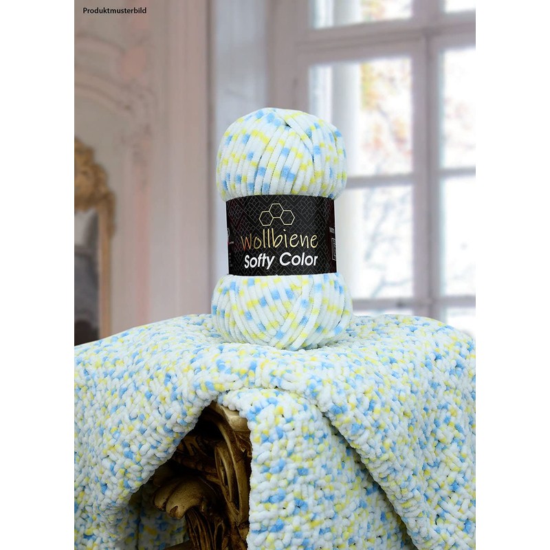 Wollbiene Softy Colour 100 g Chenille Wool Knitting Wool, Multicoloured, 100 g Wool Super Bulky (115 Black, Grey, White)