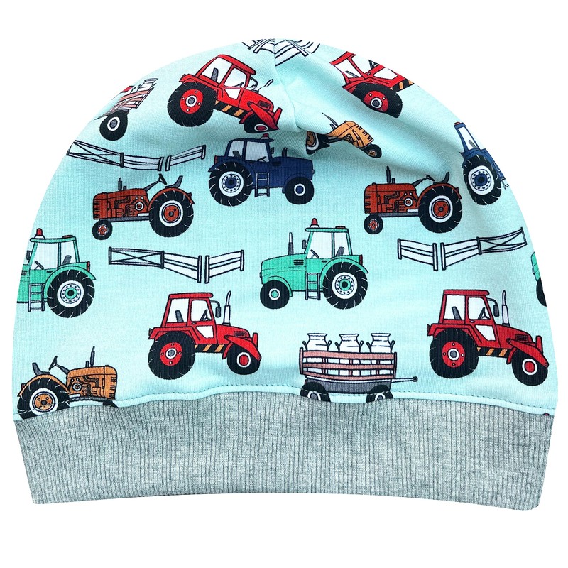 Wollhuhn Eco Lightweight Girls/Boys Beanie Hat Cuffs Elastic Transition Period Summer Children's Hat Cotton (Eco Fabrics, Organic) 22222235, Tractor light blue/mint