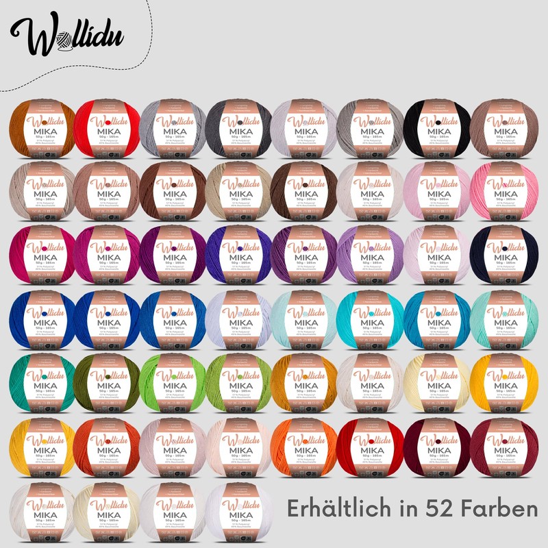 Each set consists of 10 balls of 50g each, giving you a total of 500g of yarn - ideal for larger projects or if you need multiple colours for a work. In addition, the Wollidu Mika yarn is Oeko-Tex certified, which means that it contains no harmful substances and is therefore also suitable for sensitive skin and baby clothes.