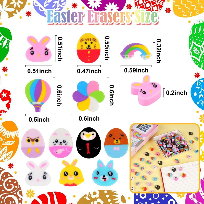 - Easter Eraser Size: Each mini eraser measures 0.3-0.6 inches, about the size of a fingernail. Keep away from young children to avoid accidental swallowing. Suitable for children over 3 years old