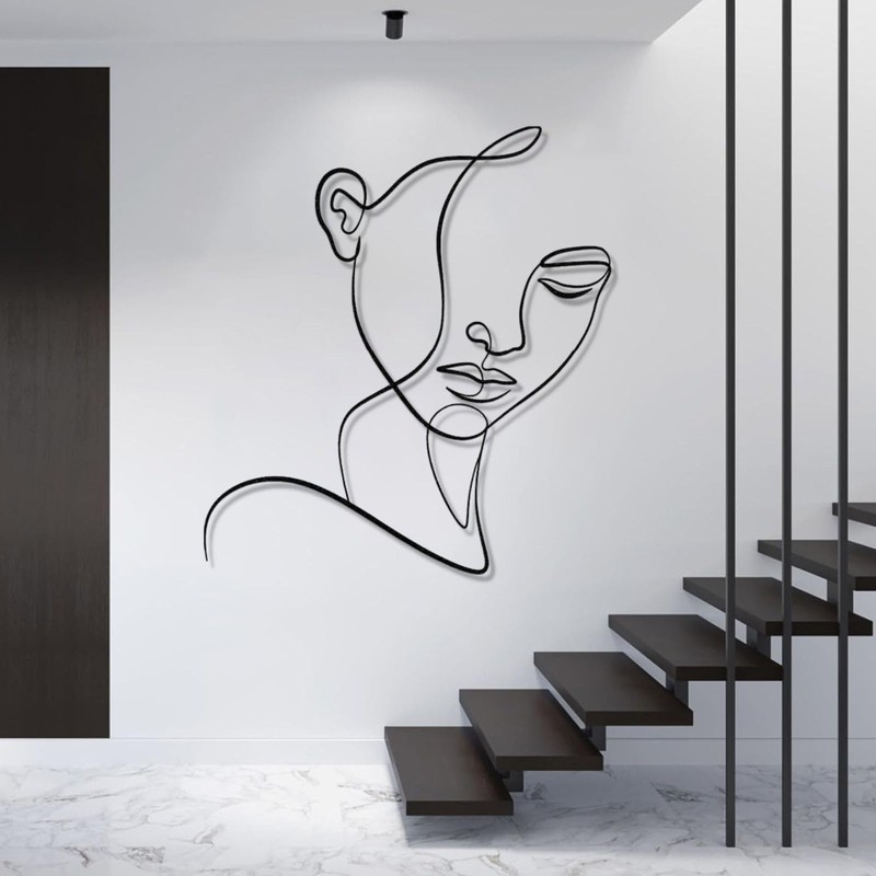 - 【Woman Face Line Metal Wall Art】Minimalist wall decor combines soft feminine elements with clean lines to bring out the femininity. The metal decorations are skillfully combined with the shadows cast on the wall for a visually unique artistic aesthetic and 3D effect