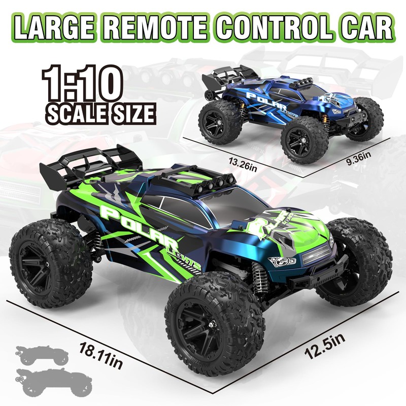 - Full-Scale High-Speed Monster Truck: This monster truck features adjustable strength coilover shock absorbers, a high-torque waterproof servo, and reinforced bumpers. The LED lighting system and metal components, including gears, transmission shafts, axles, and chassis armor, ensure durability and performance on all terrains, from sand and grass to wilderness and roads.