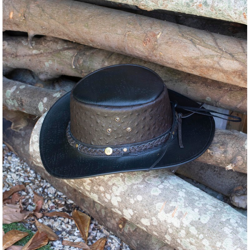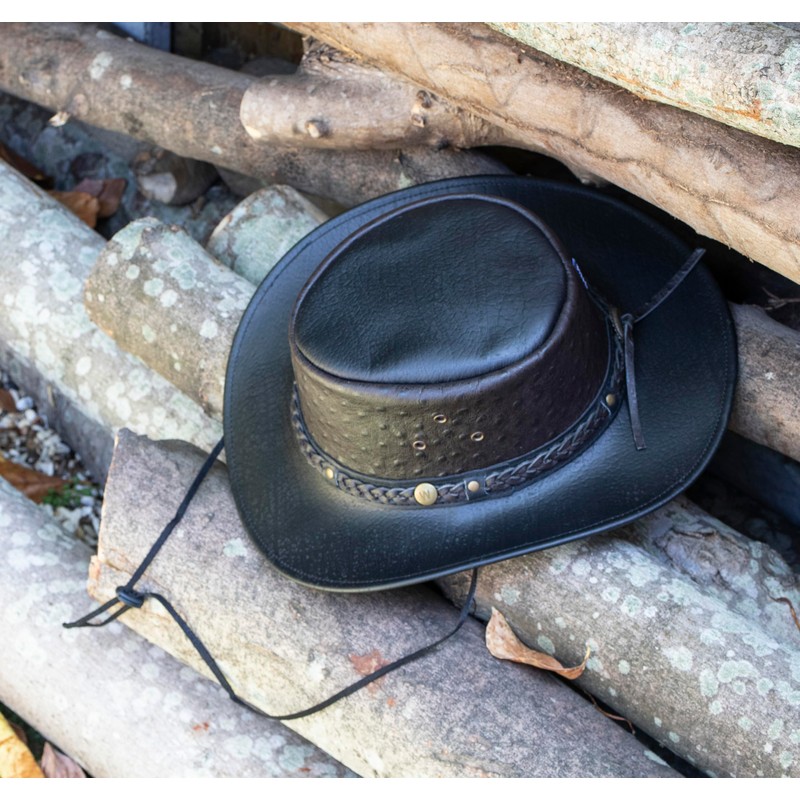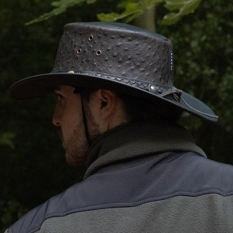Wombat The West Black Cowboy Leather Hat – Premium Outback Style | Full-Grain Leather | UV Protection | Showerproof | Wide Brim | Chin Strap | Unisex Outdoor Hat (UK, Alpha, M, Black)