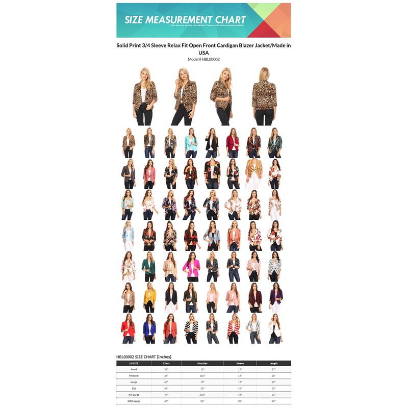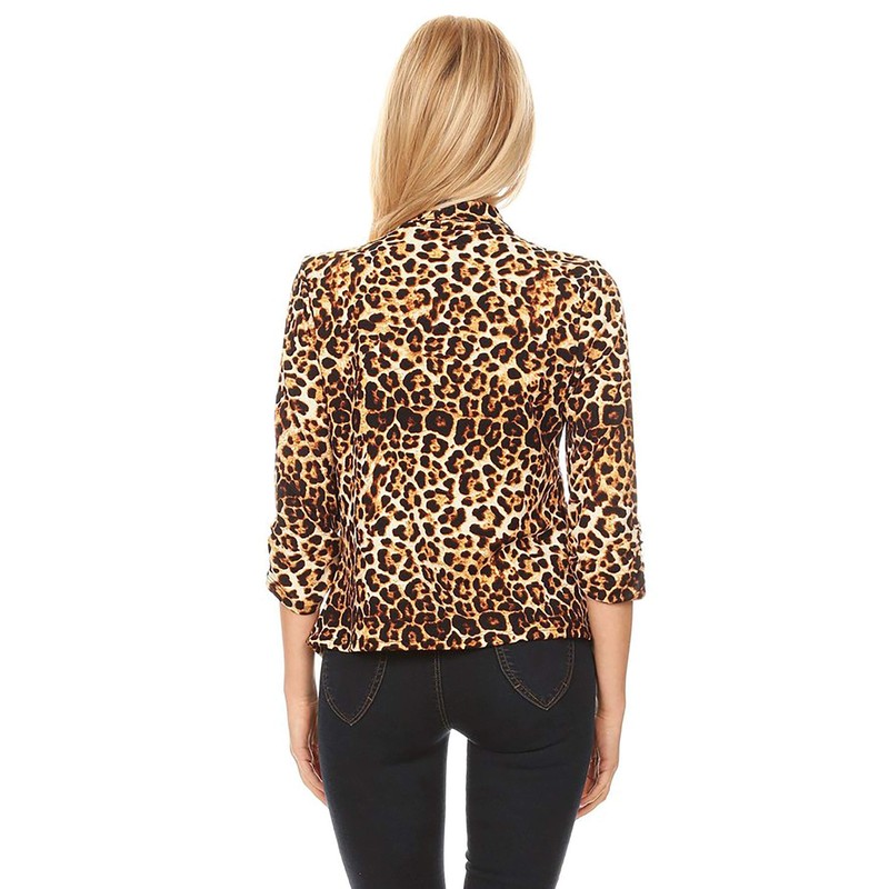 Women 3/4 Sleeve Open Front Cardigan Jacket Work Office Blazer with Plus Size Animal Brown 2 S