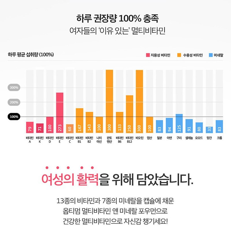 Women's Comprehensive Nutrients Multi-Vitamin ABCDEK Minerals Iron, Zinc, Copper, Selenium, Iodine / 여성 종합 영양제 멀티 비타민 A B C D E K 미네랄 철분 아연 구리 셀레늄 요오드