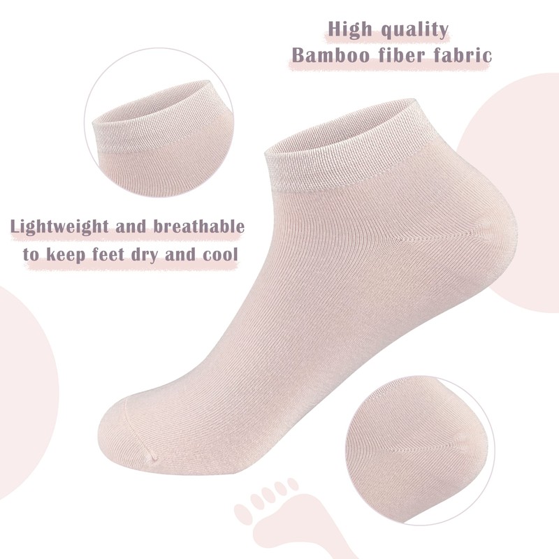 Women Bamboo Ankle Socks Ankle Length Thin Sock Odor Resistant Low Cut Sock 5 Pairs (CA/US, Alpha, Small, Regular, Regular, Pink)
