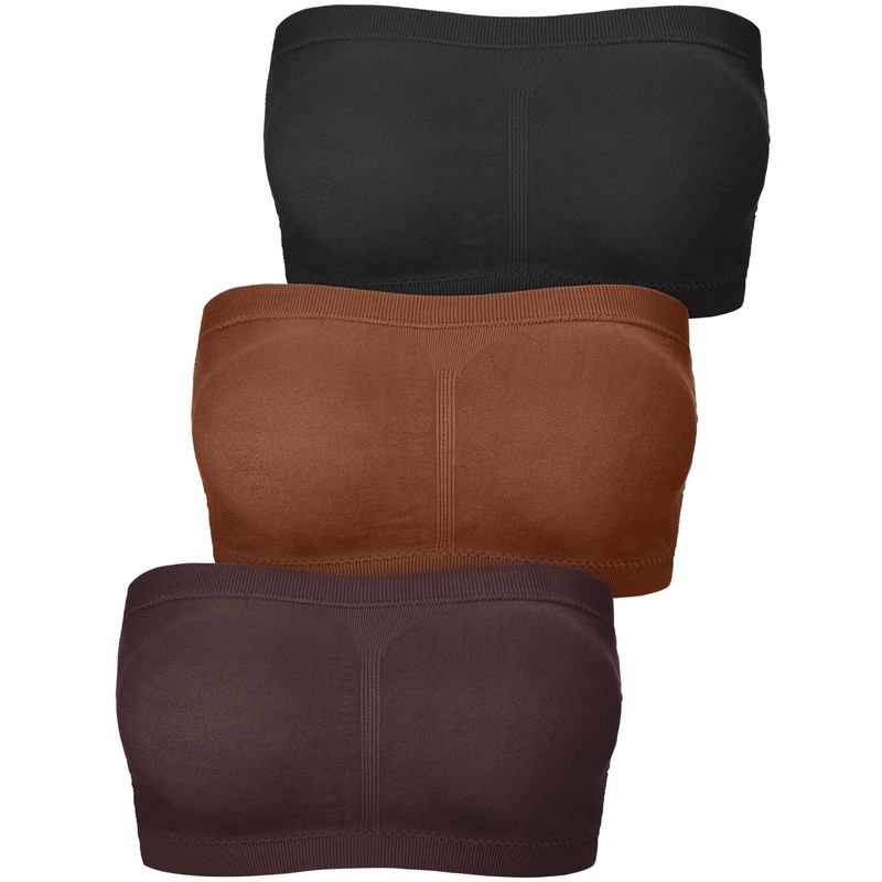 Women Bandeau Bra Padded Strapless Bralette Bra Seamless Bandeau Top Tube Bra (Black, Caramel, Dark Brown,Medium)