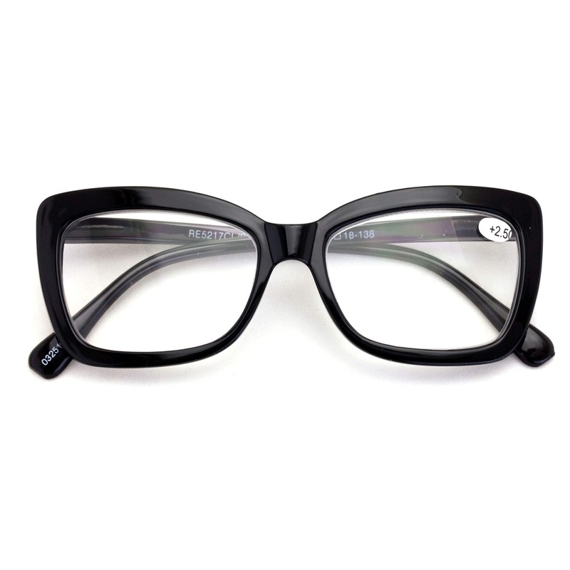Women Big Lens Butterfly Reading Glasses - Fun Cateye Clear Lens Readers - Vintage Fashion (Black, 1.50)