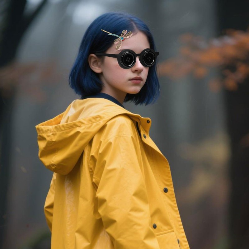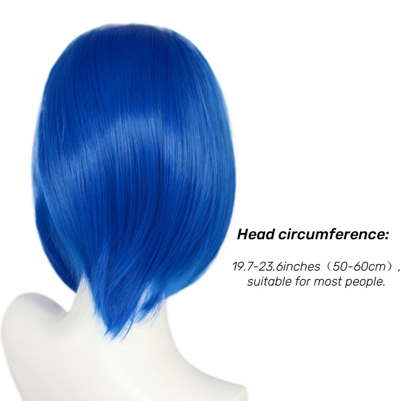 - Package includes: Women's blue wig + button-frame glasses + dragonfly hair clip + key necklace + striped knee-high socks,plus a free wig cap!