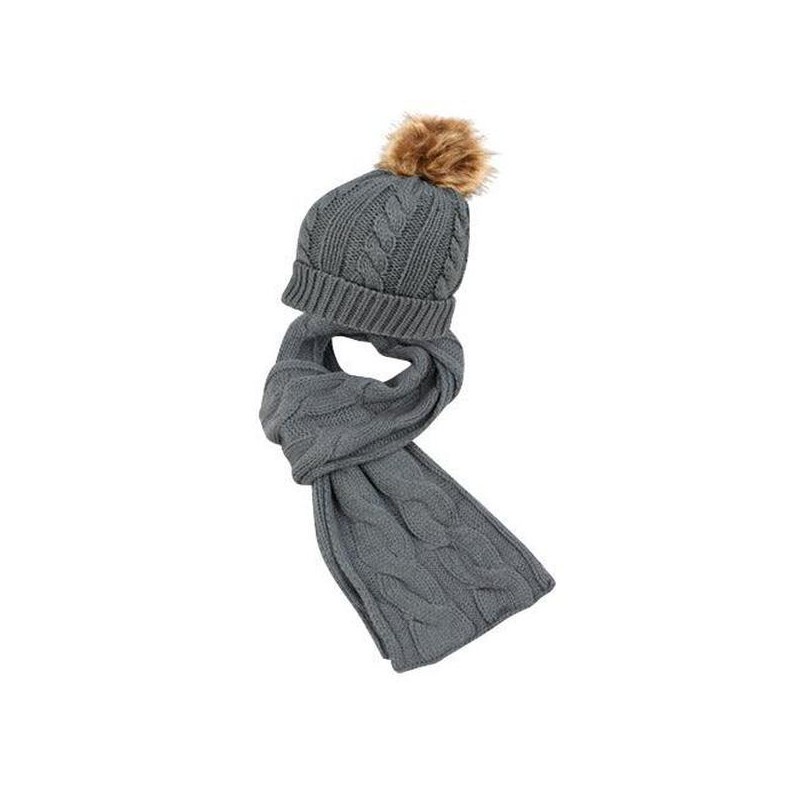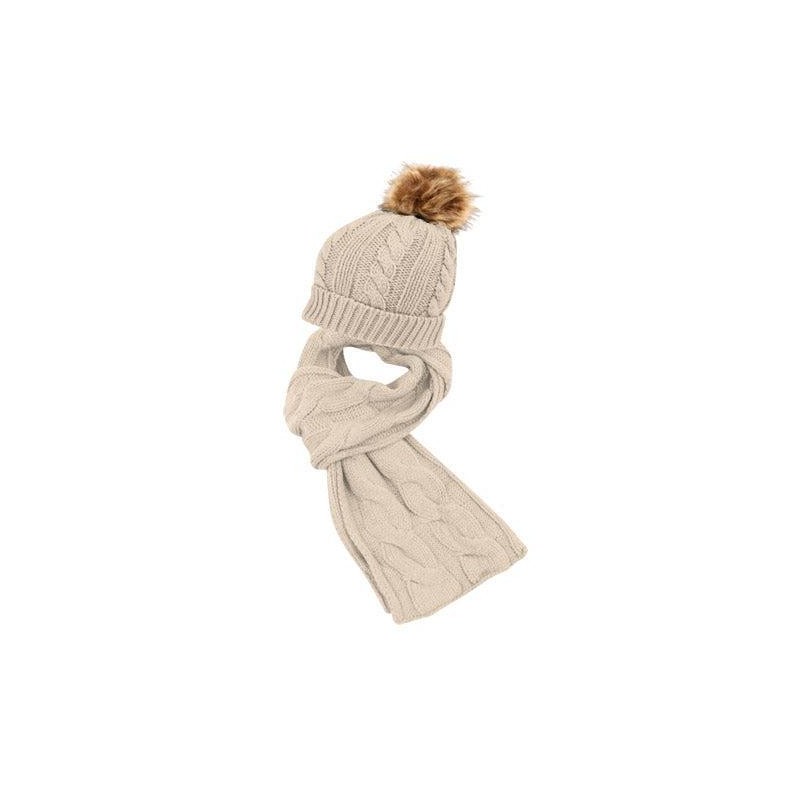 Women cable knit beanie winter pompom hat scarf 2 pcs set, warm up for the cozy day.