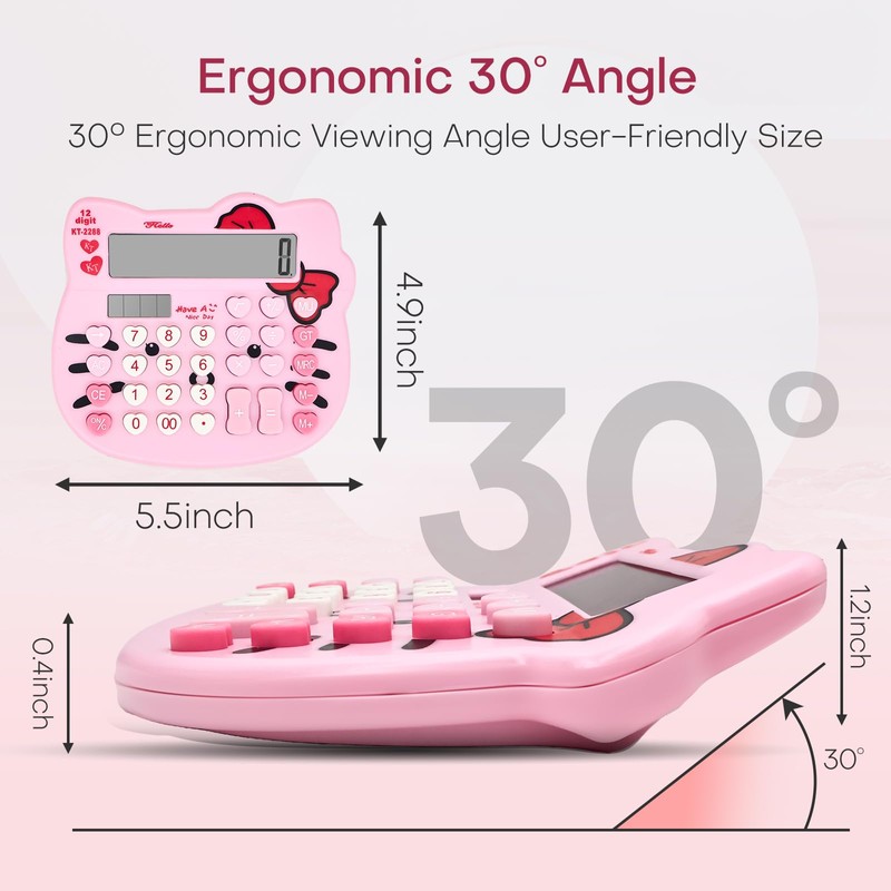 Women Calculators, Cute Desktop Calculator 12 Digit with Large LCD Display and Sensitive Button, Solar and Battery Dual Power, Standard Function for Office, Home, School (Pink)