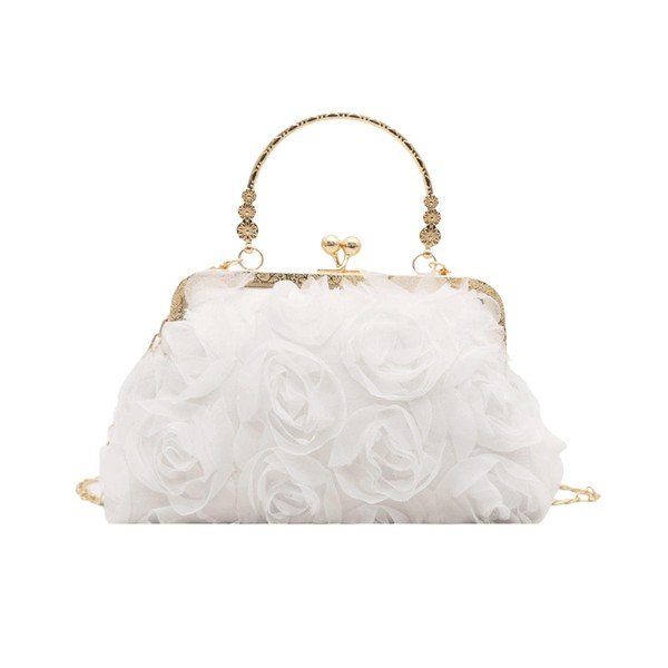 Women Clutch Purses, Elegant 3D Rose Lace Evening Bag, Vintage Retro Evening Clutch, Crossbody Shoulder Purse, White