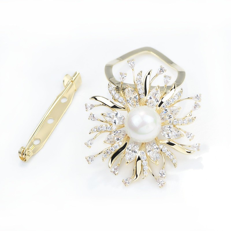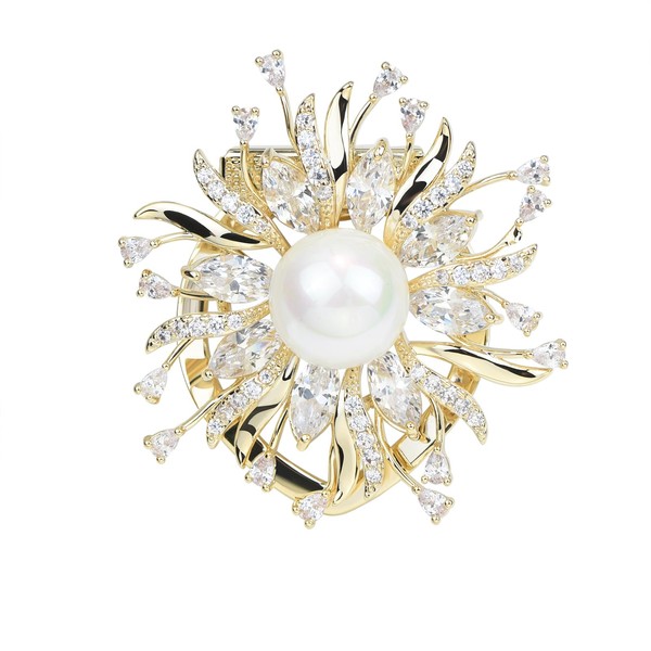 Women Crystal Pearl Bow Flower Scarf Buckle Shawl Holder Ring Scarves Cardigan Open Circle Clips Multifunctional Brooch Jewelry (Gold Chrysanthemum)