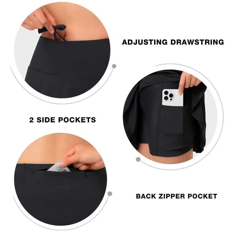 - 2 in 1 Cycling Skirts & Gripper : The 5 inch bike shorts with padded were building in skirt.2 in 1 style biking skorts, The silicone gripper around the bike skorts legs opening to stop them from going up