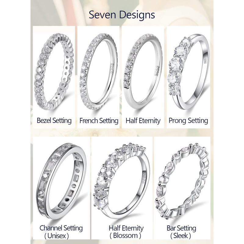 - 【Excellent Craftsmanship】 This Full Moissanite Eternity Ring Made of 925 Sterling Silver with Rhodium Finish, Hypoallergenic, Safe for Sensitive Skin, Adopted Upgraded and Excellent Polished Craftsmanship, Super Shiny and More Durable. Each Moissanite has been Carefully Selected, All of Them are D color VVS1 Clarity.